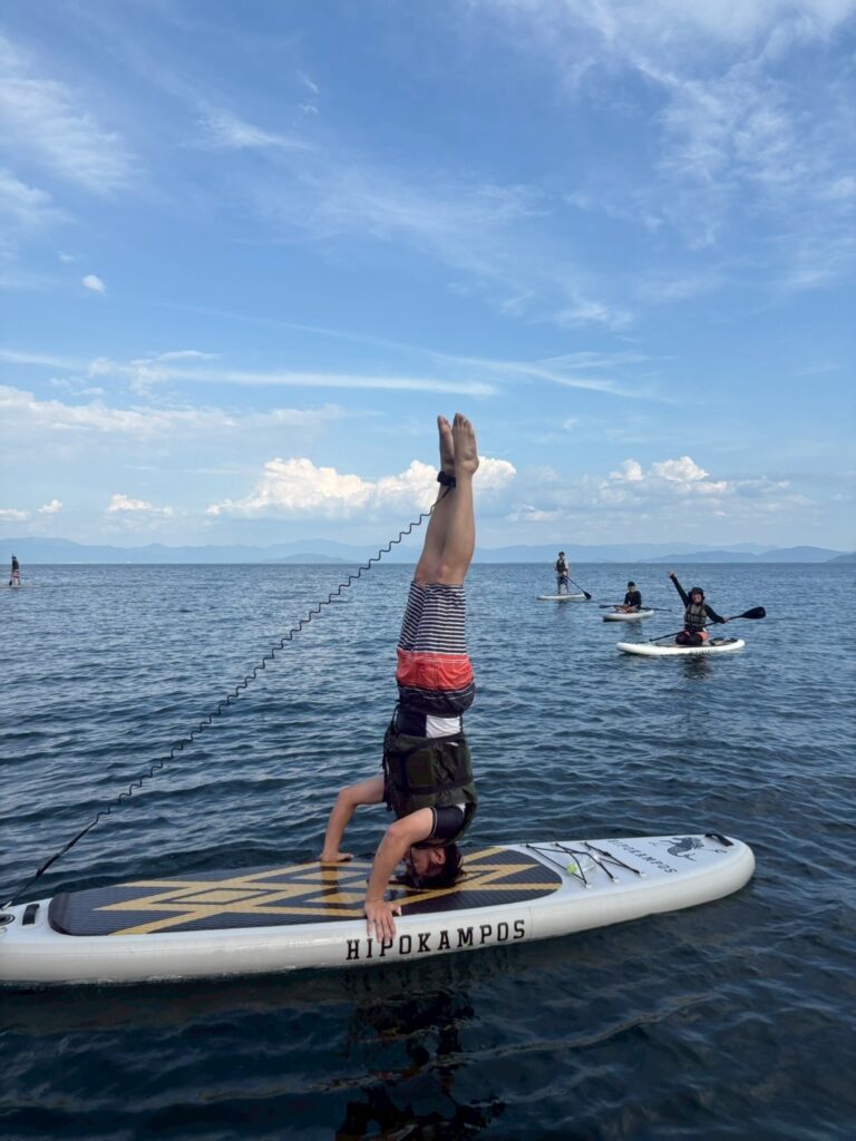 そしてそれを利用してSUPヨガなどもよく行われているので、姉弟で三転倒立に挑戦してみることに・・・