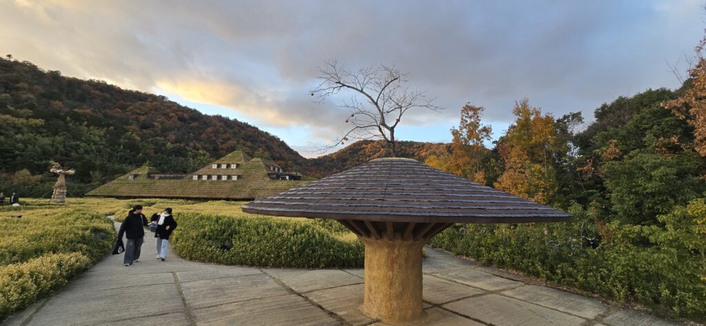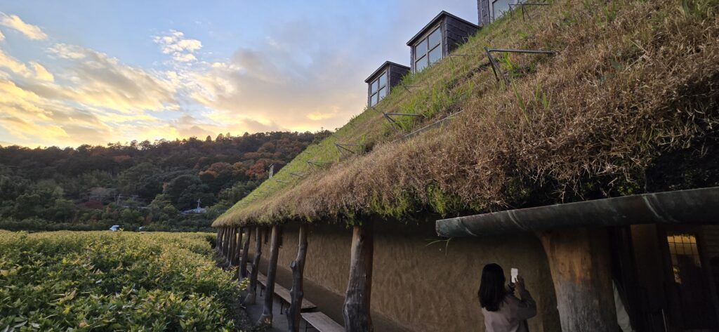 ショップなどが屋根が全て緑に包まれた建物や、ジブリ映画に出てくるような建物でつくられていて、